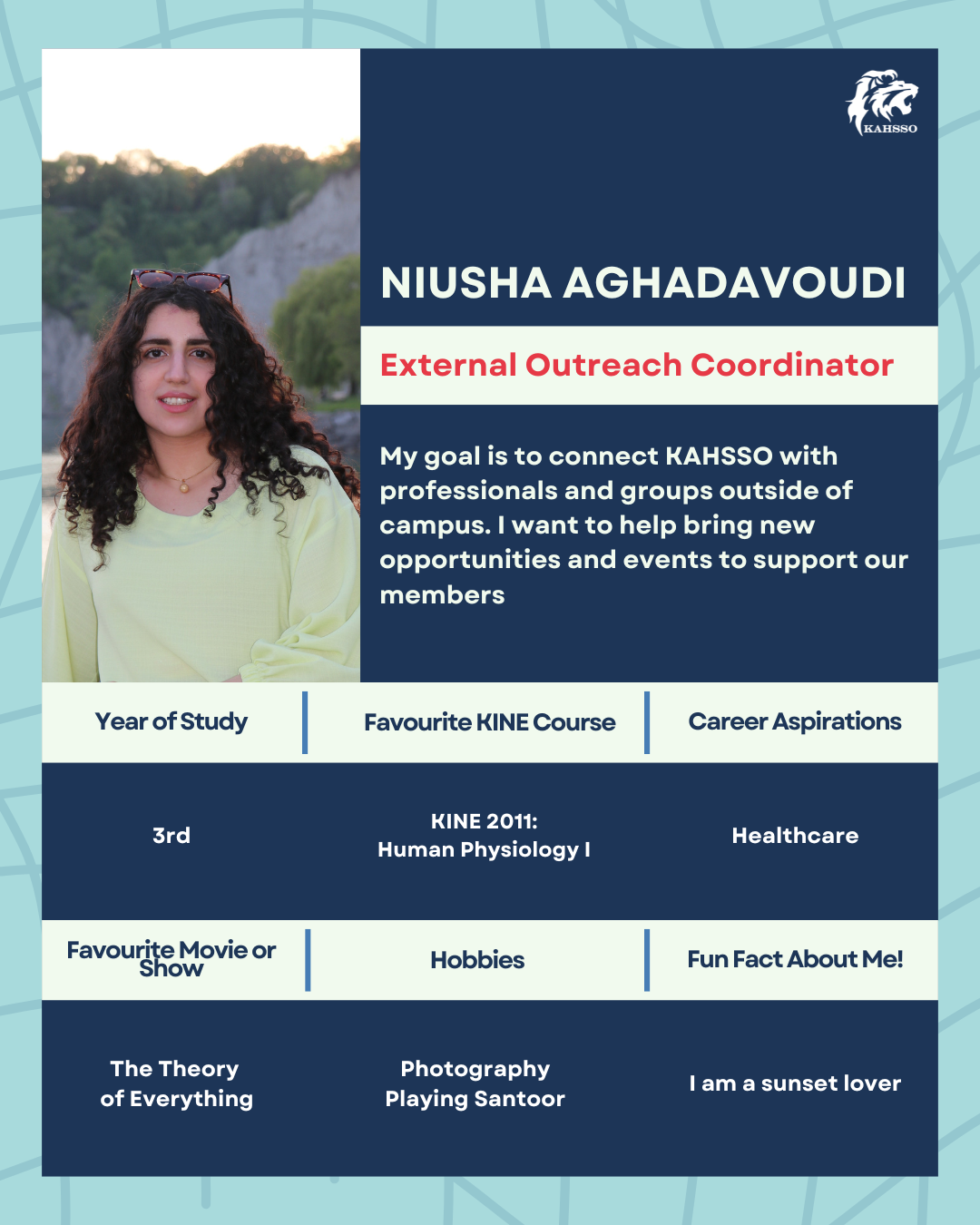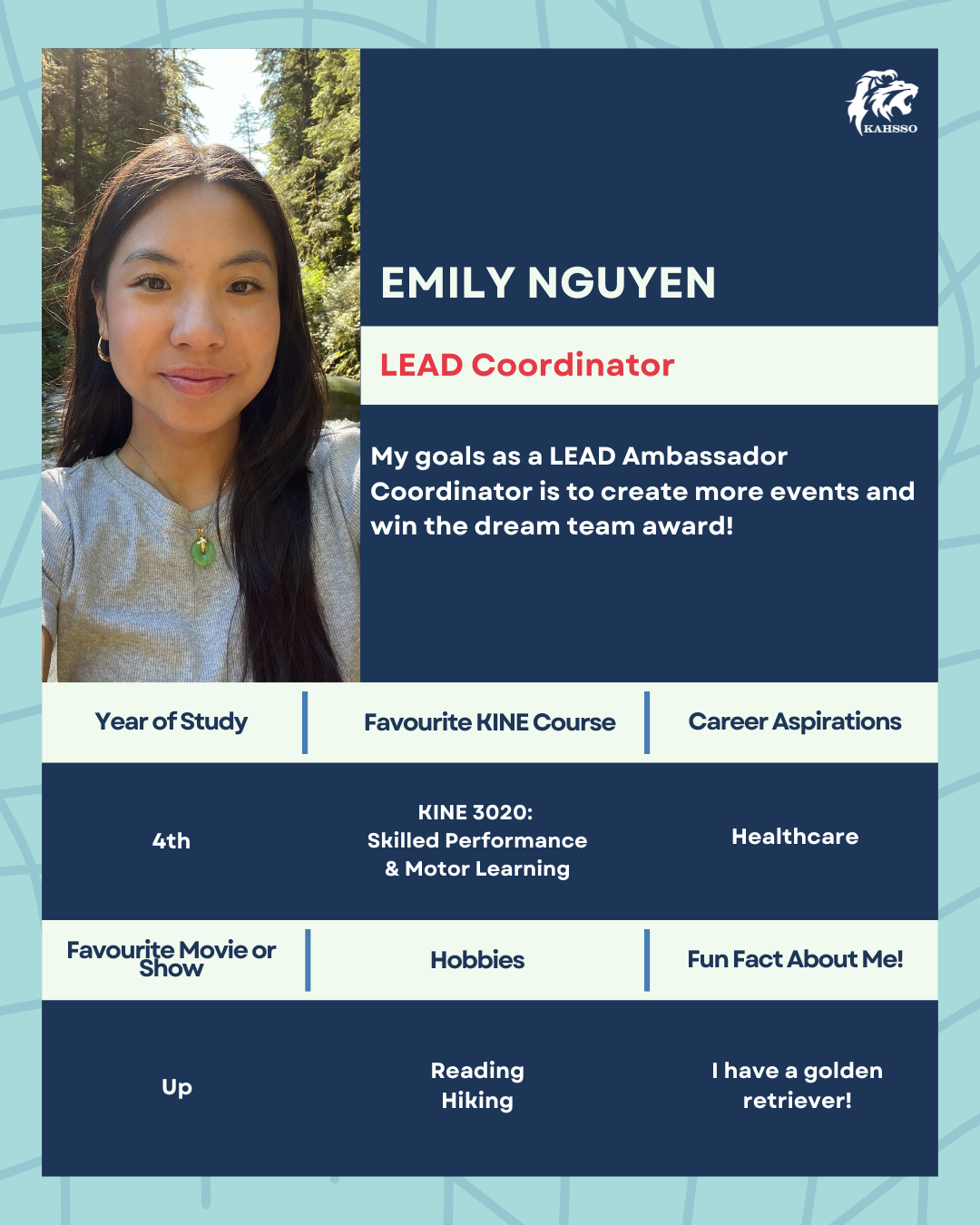 The Executive Team of KAHSSO is responsible for overseeing and coordinating the organization’s initiatives, events, and general membership. Keep up with the KAHSSO Executive Team and our planned events and activities by following our Instagram: kahssoyu.